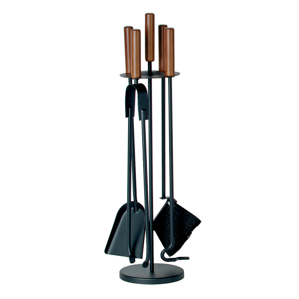 Das Set enthält vier grundlegende Werkzeuge, die jeweils für ein effizientes und sicheres Brandmanagement konzipiert sind. Die schlanken, langen Linien der Werkzeuge bieten Benutzerfreundlichkeit und einen Hauch von Eleganz, während die vertikale Anordnung Platz und Organisation optimiert.