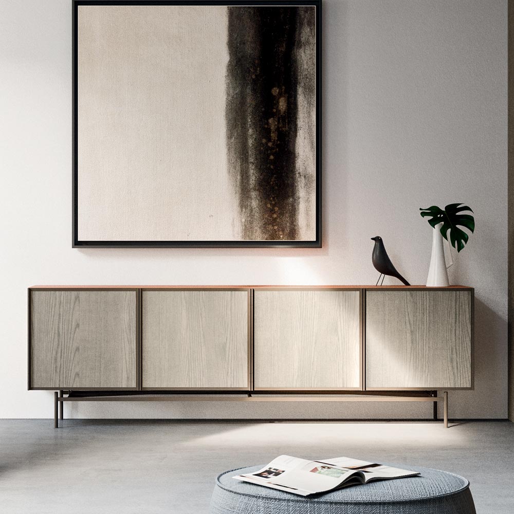 Sideboard mit 4 Türen für Wohnzimmer oder Eingang aus ökologischem Holz, hohe Qualität made in Italy.