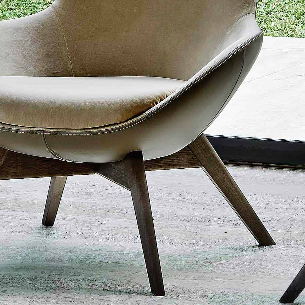 Wohnzimmer Sessel aus Leder und Stoff mit Holzsockel Made in Italy - Ama