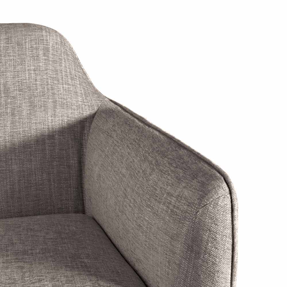 Moderner Wohnzimmersessel mit Innenstruktur aus mehrschichtigen Holzpaneelen, gepolstert und mit vollständig abnehmbarem Stoffund schwarz verchromten Metallfüßen bezogen . Sein Design ist ein klarer Hinweis auf den traditionellen Stil der 50er Jahre, der sich durch eine wunderbare Harmonie zwischen den Formen auszeichnet und durch die Metalldruckgussfüße, die einen äußerst modernen und avantgardistischen Touch verleihen, einzigartig und ästhetisch interessant gemacht wurde. Was geboren wird, ist ein Möbelstück mit einem starken Charakter und einer leicht erkennbaren Ästhetik dank einer imposanten Persönlichkeit und eines Stils, der jeden Wohnbereich definieren kann. Kissen nicht enthalten .