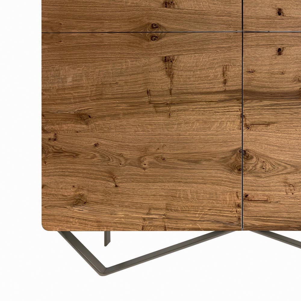 Komplett in Italien hergestelltesWohnzimmer-Sideboard , bestehend aus einer Basis mit 2 Eisenfüßen in Nickel-Finish , einer Schale in MDF-Oberfläche in Kohle-Finish , einer Rückwand aus Massivholz, komplett mit 4 Türen in Asteichen -Tischlerplatte mit Country-Eiche-Finish und Innenregalen in MDF . Die Verwendung von einfachen, aber widerstandsfähigen Materialien verwandelt dieses Produkt in ein Möbelstück mit großer Vielseitigkeit und einem attraktiven und interessanten Aussehen.
