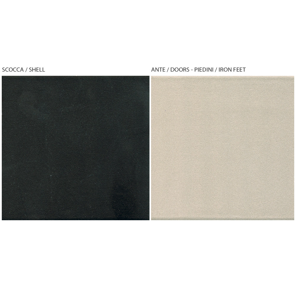 Wohnzimmer-Sideboard mit anthrazitfarbener Schale, Innenregalen und Türen aus MDF mit Nickel-Finish, Rückwand aus Sperrholz und Füßen aus vernickeltem Eisen , vollständig in Italien hergestellt. Das Produkt ist Teil der neuen Linie moderner Produkte, die mit Respekt vor der Natur hergestellt werden. Dieses elegante Sideboard zeichnet sich durch die Funktionalität und hohe Qualität italienischer Handwerkskunst aus. Ein vielseitiges und originelles Design , das für verschiedene Verwendungszwecke in verschiedenen Bereichen des Hauses konzipiert ist und die Einrichtung auf exklusive Weise je nach Ihrem Geschmack und Bedarf vervollständigt.