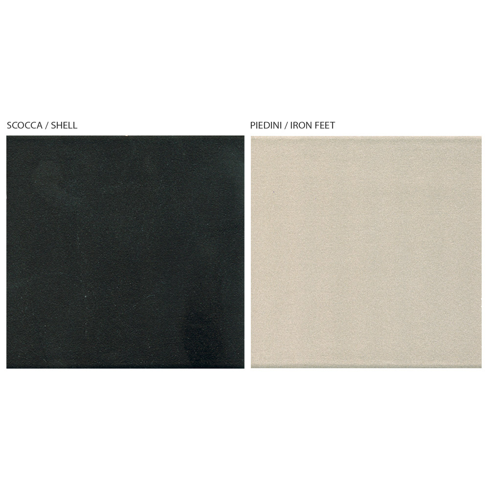 4- türiges Wohnzimmer-Sideboard mit anthrazitfarbenerMDF-Schale und Eisenfüßen mit Nickel- Finish, 4 Innenregale aus MDF , Rückwand aus massivem Sperrholz , Türen aus geknoteter Eichenholzplatte mit Landhaus-Eichen- Finish und Glaseinsätzen in Anthrazit- Finish, vollständig in Italien hergestellt.