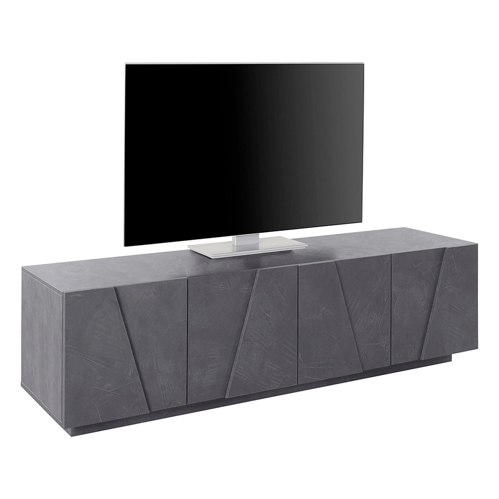 Der TV-Ständer besteht aus 4 Flügeltüren, die durch die geometrische Reliefschnitzerei auf der Oberfläche besonders gestaltet sind und 2 Staufächer schließen, die viel Stauraum garantieren. Es besteht aus Melamin und ist zu 100 % Made in Italy . Dieses Produkt eignet sich dank seiner schlichten und eleganten Oberflächen , die der Umgebung eine einzigartige und unvergessliche Note verleihen, zur Vervollständigung der Einrichtung jedes Wohnbereichs. Das verwendete Material garantiert Qualität und Beständigkeit auch im Laufe der Zeit.
