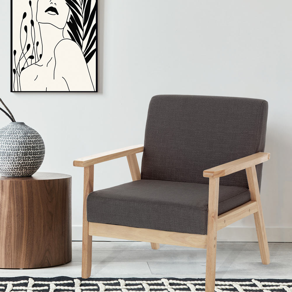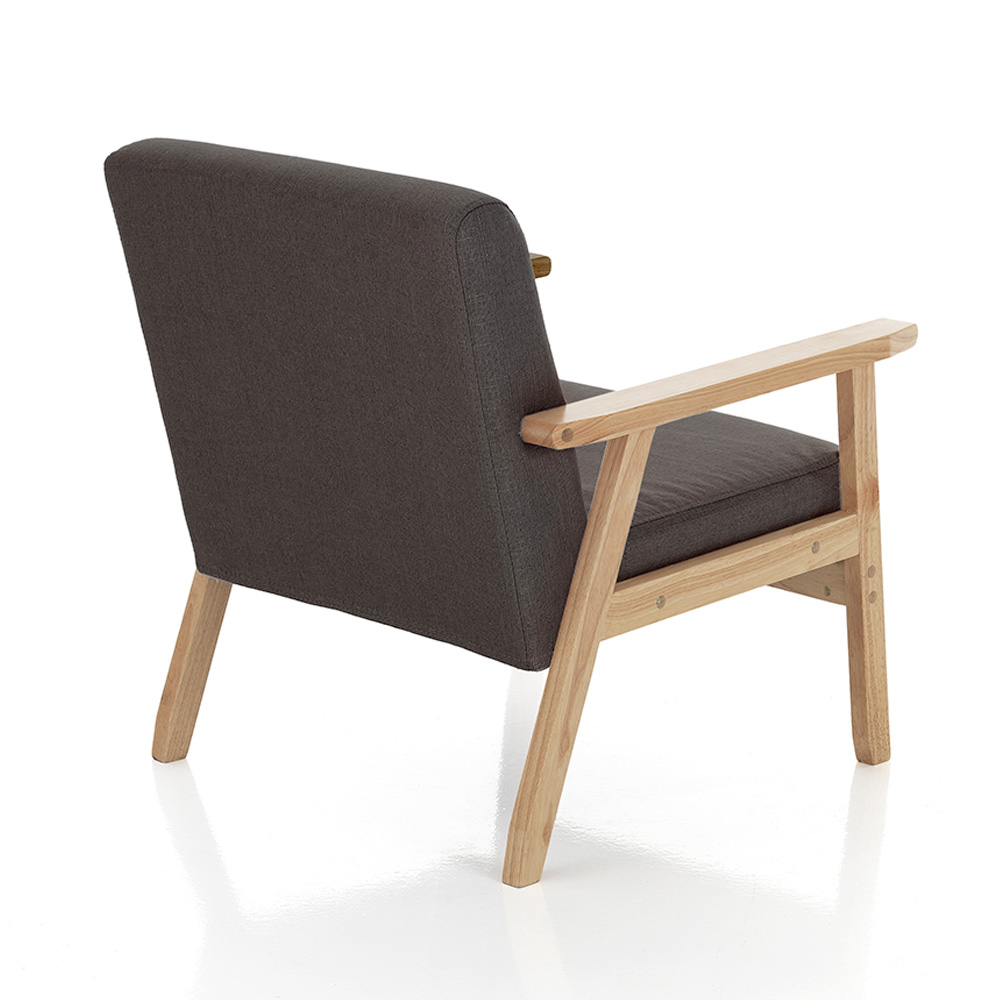 Dieser Sessel verbindet Eleganz und Komfort mit einem klaren und zeitgenössischen Design. Er ist aus Massivholz gefertigt, bietet außergewöhnlichen Widerstand und ein warmes Aussehen, das zum Entspannen einlädt. Der Kontrast mit der dunkelgrauen Stoffpolsterung verleiht jedem Raum einen Hauch moderner Raffinesse .