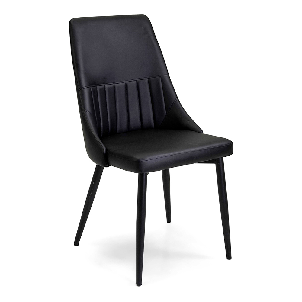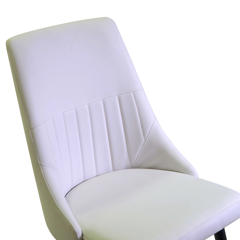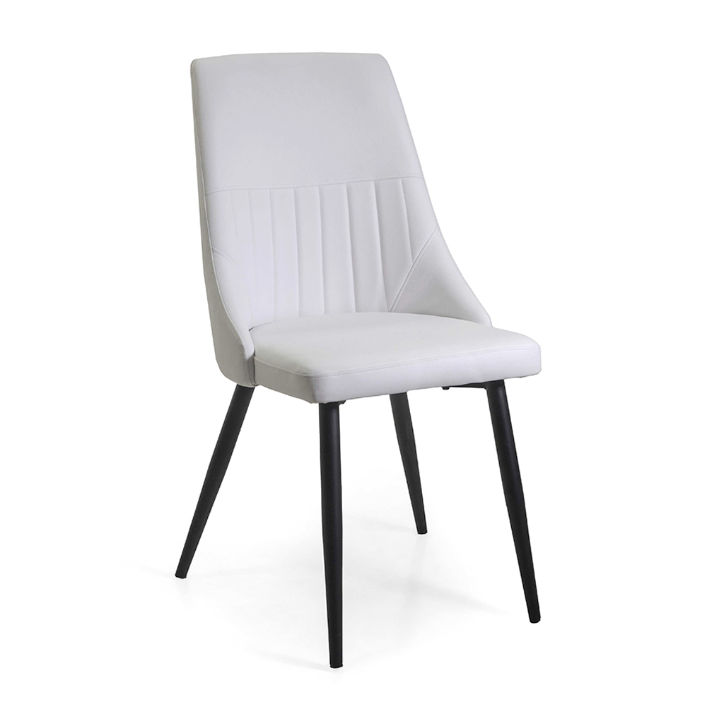 Hergestellt mit einem ergonomischen Sitz, gepolstert mit hochwertigem Öko-Leder, ist dieser Stuhl eine perfekte Kombination aus Komfort und zeitgenössischem Design. Die Polsterung, angereichert mit vertikalen Nähten, verleiht ihm einen raffinierten Look, der perfekt in moderne Esszimmer, elegante Büros oder raffinierte Kontrakträume passt.