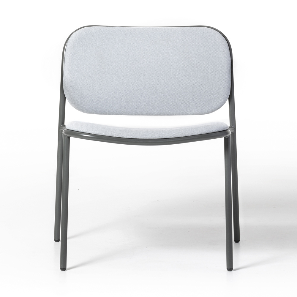 Lounge-Sessel mit stapelbarer Struktur aus lackiertem Metall und gepolstertem Sitz und Rückenlehne mit Stoff- oder Samtbezug . Dieses vollständig in Italien hergestellte Möbelstück präsentiert einen traditionellen Stil, der an einen zeitgenössischen Kontext angepasst ist, um ein Gefühl der Innovation zu schaffen, indem es seine Idee auf Konzepten von Originalität und Raffinesse basiert. Die weiche Polsterung rundet die Ästhetik des Sessels ab und bietet einen einladenden und bequemen Sitz, ideal, um sich in modern eingerichteten Wohnbereichen wertvolle Momente der Entspannung zu gönnen.