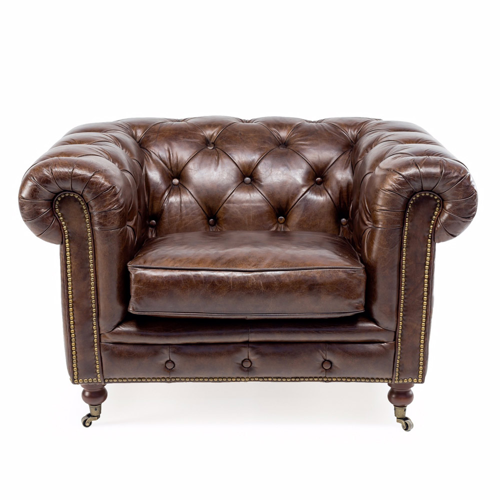 Wohnzimmersessel aus echtem dunkelbraunem Leder im klassischen englischen Stil.