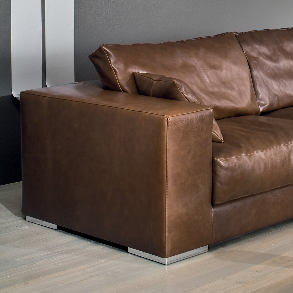 Das Sofa drückt eine moderne und funktionale Ästhetik aus. Seine robuste Struktur ist mit großen und einladenden Kissen verziert, die Komfort garantieren. Die hochwertige Polsterung, die in verschiedenen Farbtönen erhältlich ist, passt elegant zu verschiedenen Einrichtungsstilen. Das geradlinige Design und die Metallfüße betonen die Modernität des Stücks und machen es ideal sowohl für Wohnräume als auch für Vertragsumgebungen wie Büros oder Wartezimmer.
