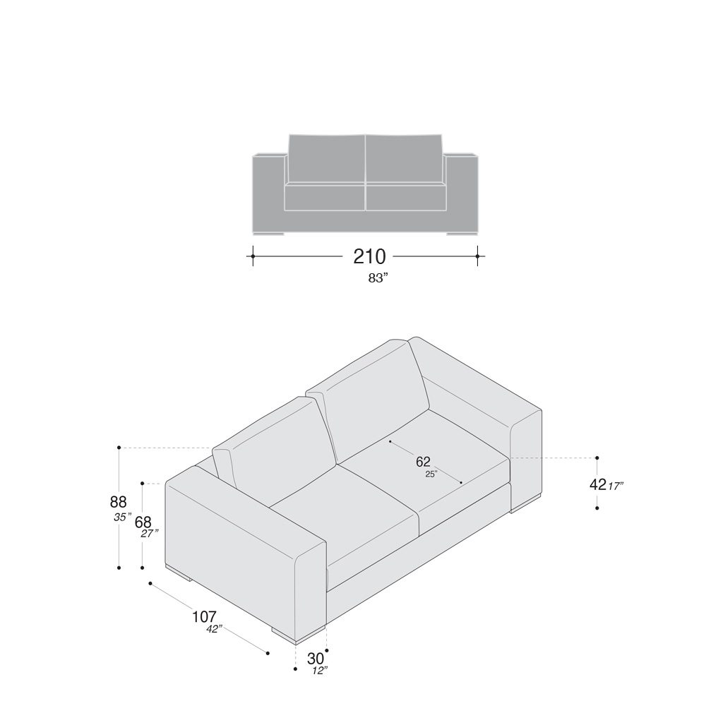 • Länge: 210 x Tiefe: 107 x Höhe: 88 cm