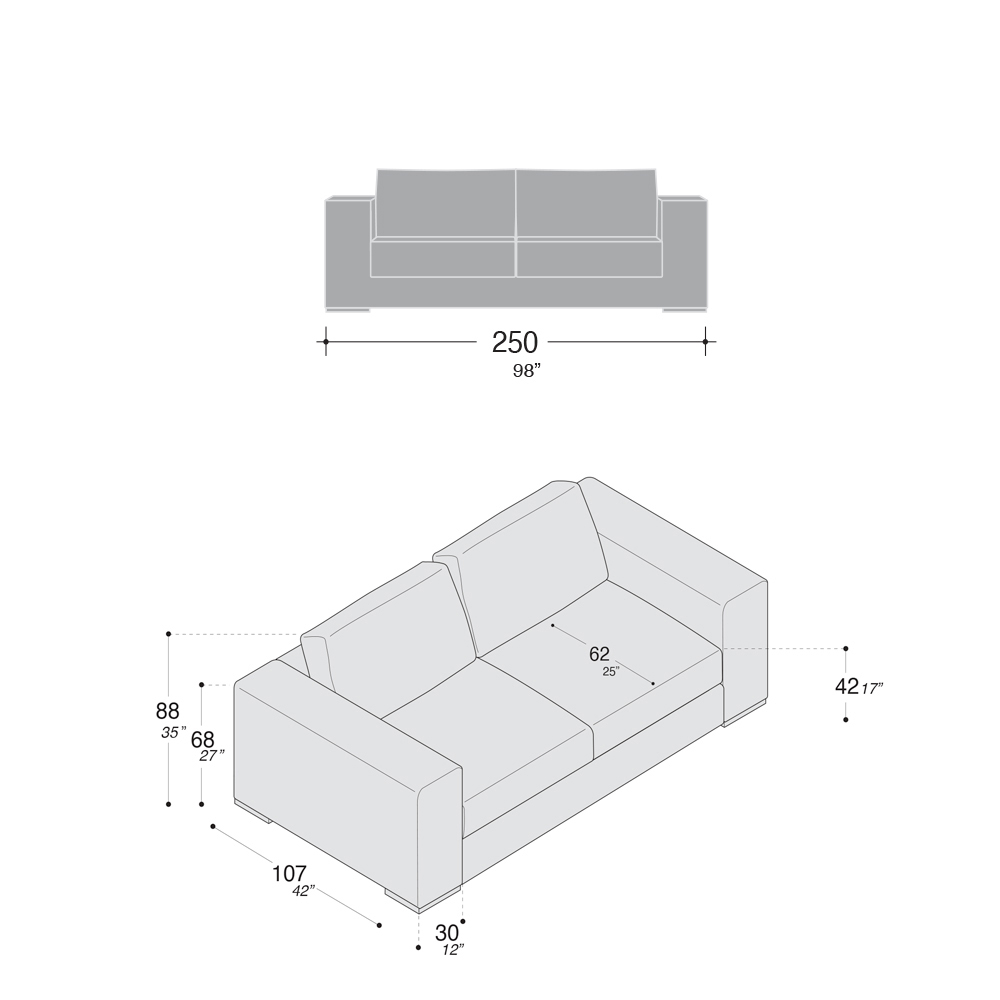 • Länge: 250 x Tiefe: 107 x Höhe: 88 cm