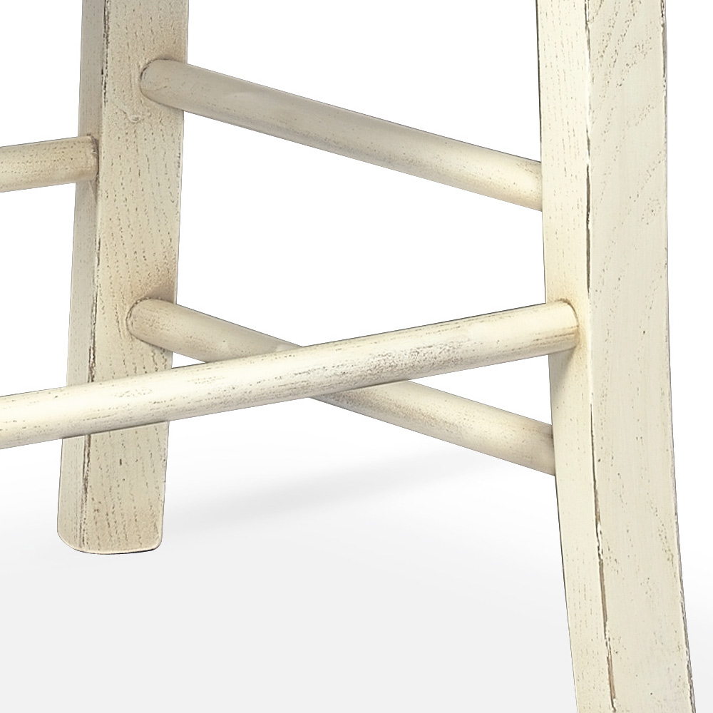 Esszimmerstuhl mit Struktur aus elfenbeinfarben gebeizter, lackierter Esche und Sitzfläche aus Stroh .