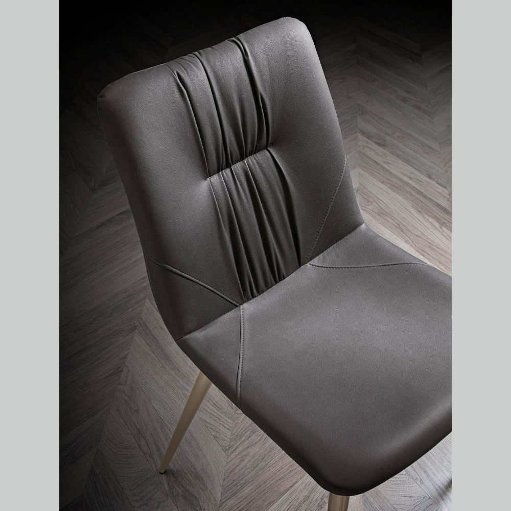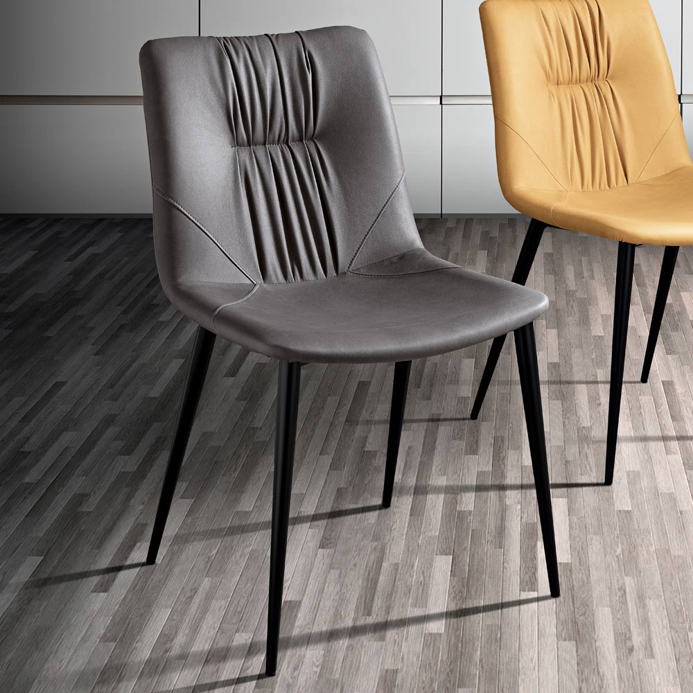 Der Stuhl ist der Inbegriff urbaner Eleganz und verleiht jedem Raum eine lebendige Note. Die Metallbeine unterstreichen die Modernität des Designs und bieten gleichzeitig eine solide und langlebige Basis.