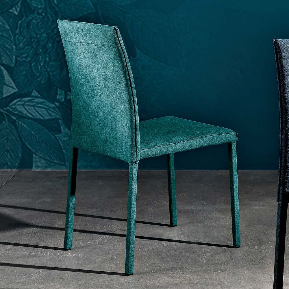 Die hohe Rückenlehne und das schlanke Design garantieren Halt und Eleganz, während die verlängerten Beine die Schlankheit des Profils betonen, ohne die Robustheit zu beeinträchtigen. Die Verarbeitung dieses Stuhls stellt die perfekte Kombination aus Handwerkskunst und Innovation dar, die das Design „Made in Italy“ auszeichnet.