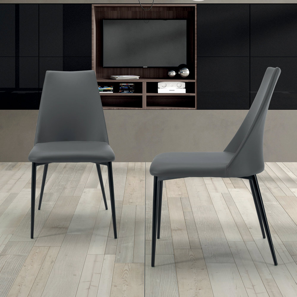 Wohnzimmerstuhl mit Sitz und Rückenlehne aus Stahl, komplett mit Kunstleder bezogen und Beinen aus Stahl oder Eschenholz. Wesentlichkeit und Minimalismus sind die besonderen Merkmale dieses Einrichtungsaccessoires im zeitgenössischen Stil , das für diejenigen gedacht ist, die schlichte Einrichtung lieben, aber gleichzeitig eine starke visuelle Wirkung haben möchten . Die ästhetische Leichtigkeit seiner Formen ist seine größte Stärke, die es ihm ermöglicht, sich in jeden Kontext einzufügen und stets einzigartig und originell zu wirken.