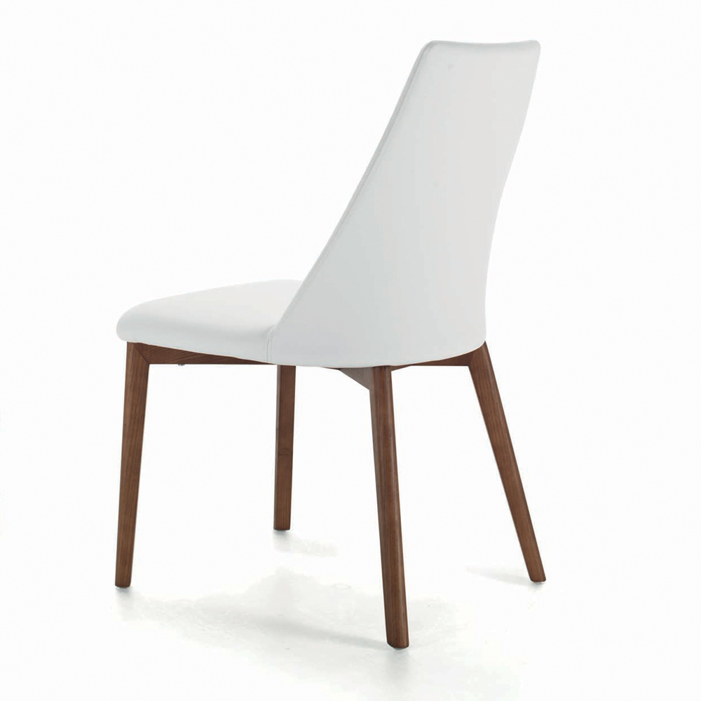 weißes BLOOM B1 Öko-Leder. Beine aus Canaletto-Walnussholz