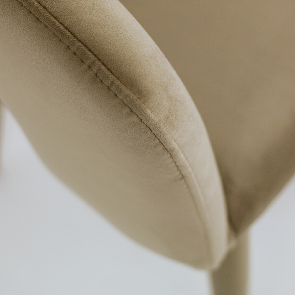 Wohnzimmerstuhl mit Stahlkonstruktion, komplett mit Samt in Seiloptik überzogen, und Basis aus seillackiertem Stahl. Ein Einrichtungsaccessoire, das sich leicht an jeden stilistischen Kontext anpasst, in den es eingefügt wird, und dazu beiträgt, eine einzigartige und stilvolle Atmosphäre zu schaffen. Die ästhetische Leichtigkeit, die sein Design auszeichnet, macht es perfekt, um Wohnräume wie Esszimmer und Küchen, aber auch Objektbereiche wie Bars und Restaurants durch seine einfachen und raffinierten Formen mit Persönlichkeit zu vervollständigen.