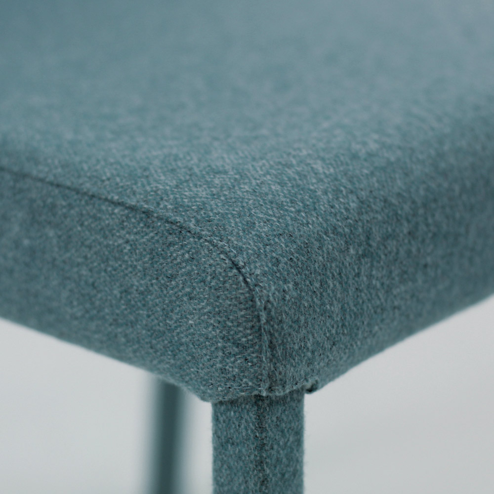 NB: Der Stuhl ist in verschiedenen Stoffen und Farben erhältlich. Kontrastnähte sind auf Anfrage erhältlich.