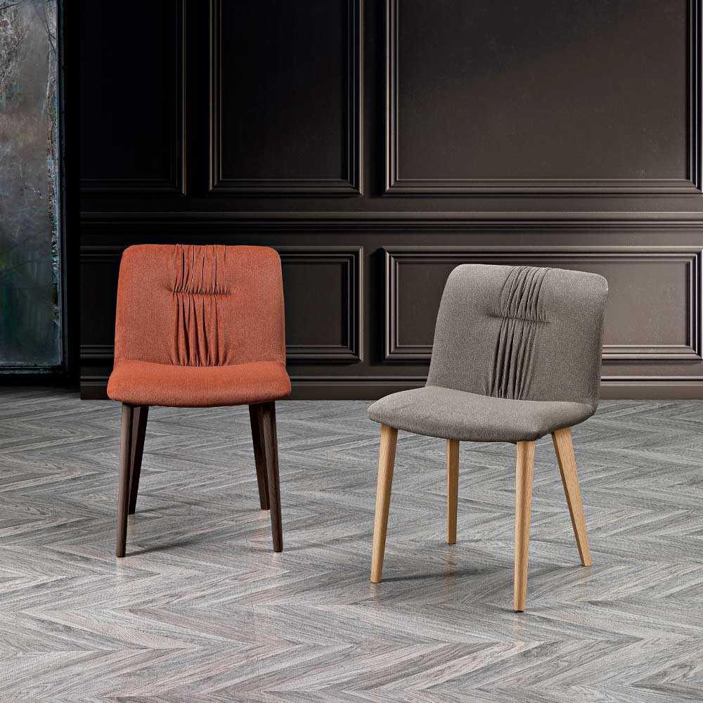 Verwandeln Sie Ihr Esszimmer in einen komfortableren und eleganteren Raum mit dem modernen Monocoque-Stuhl mit einer Sitzfläche, die mit pflegeleichtem Kristallstoff bezogen ist und in verschiedenen Farbvarianten erhältlich ist: