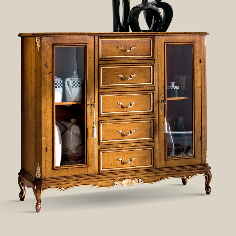 Wohnzimmervitrine aus Holz mit 2 Türen und 5 Schubladen Made in Italy.