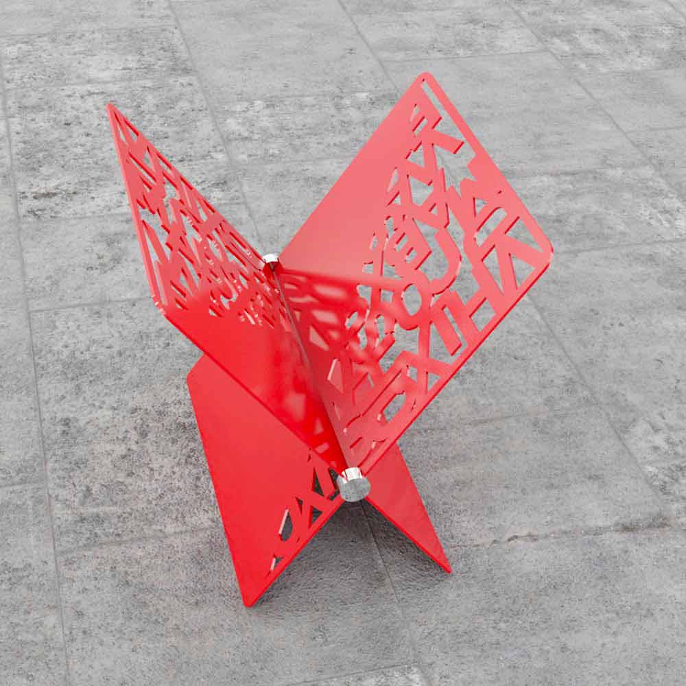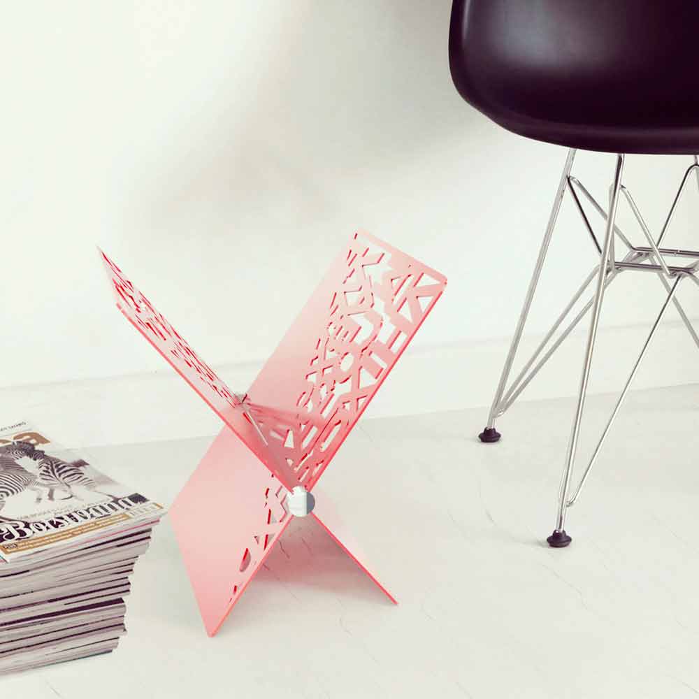 Ein Zeitungsständer aus Buchstaben. Welche unterstützt andere Buchstaben, die auf den Seiten von Hochglanzmagazinen abgedruckt. Daher auch der Name des einzigartigen Möbelstück, Rotokalko, die abgesehen davon, praktisch und funktional, möbliert mit modernen Geschmack Ihre jede Umgebung.