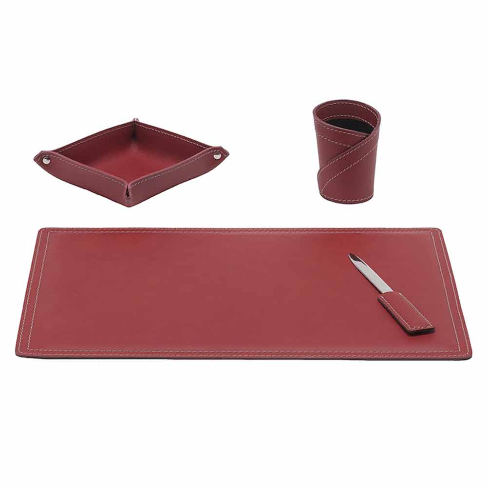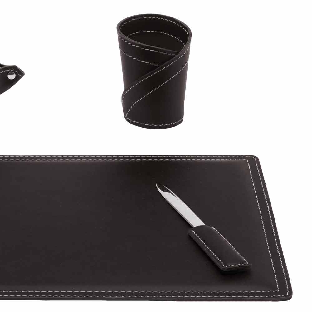 Zubehör Schreibtisch aus regeneriertem Leder, 4 Stück, Made in Italy - Ascanio