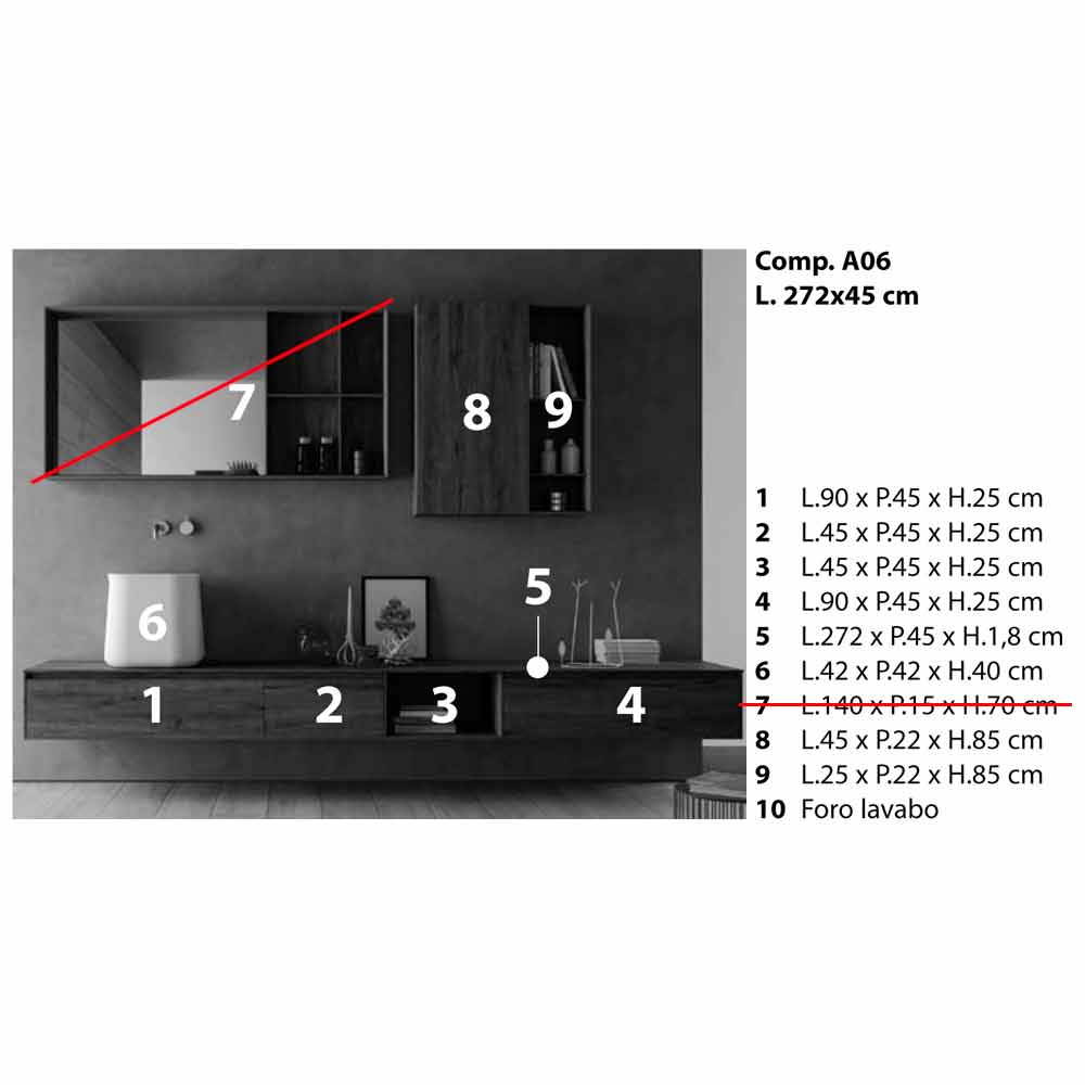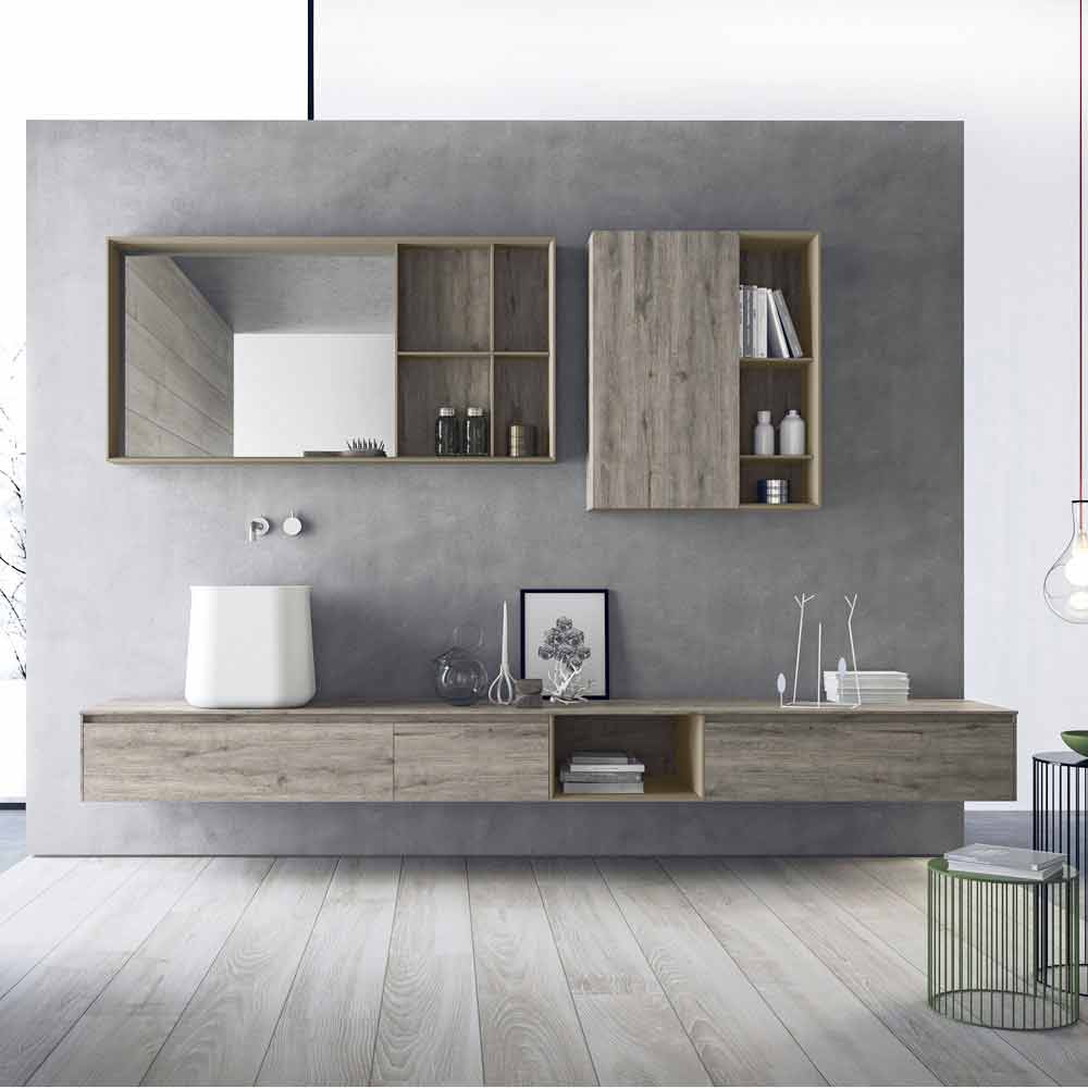Zusammensetzung von modernen Badmöbeln, hängendes und langbeiniges Design mit Waschtisch, hergestellt in Italien.