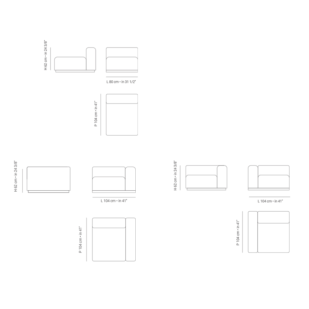 • linkes Eckelement: L 104 x T 104 x H 62 cm