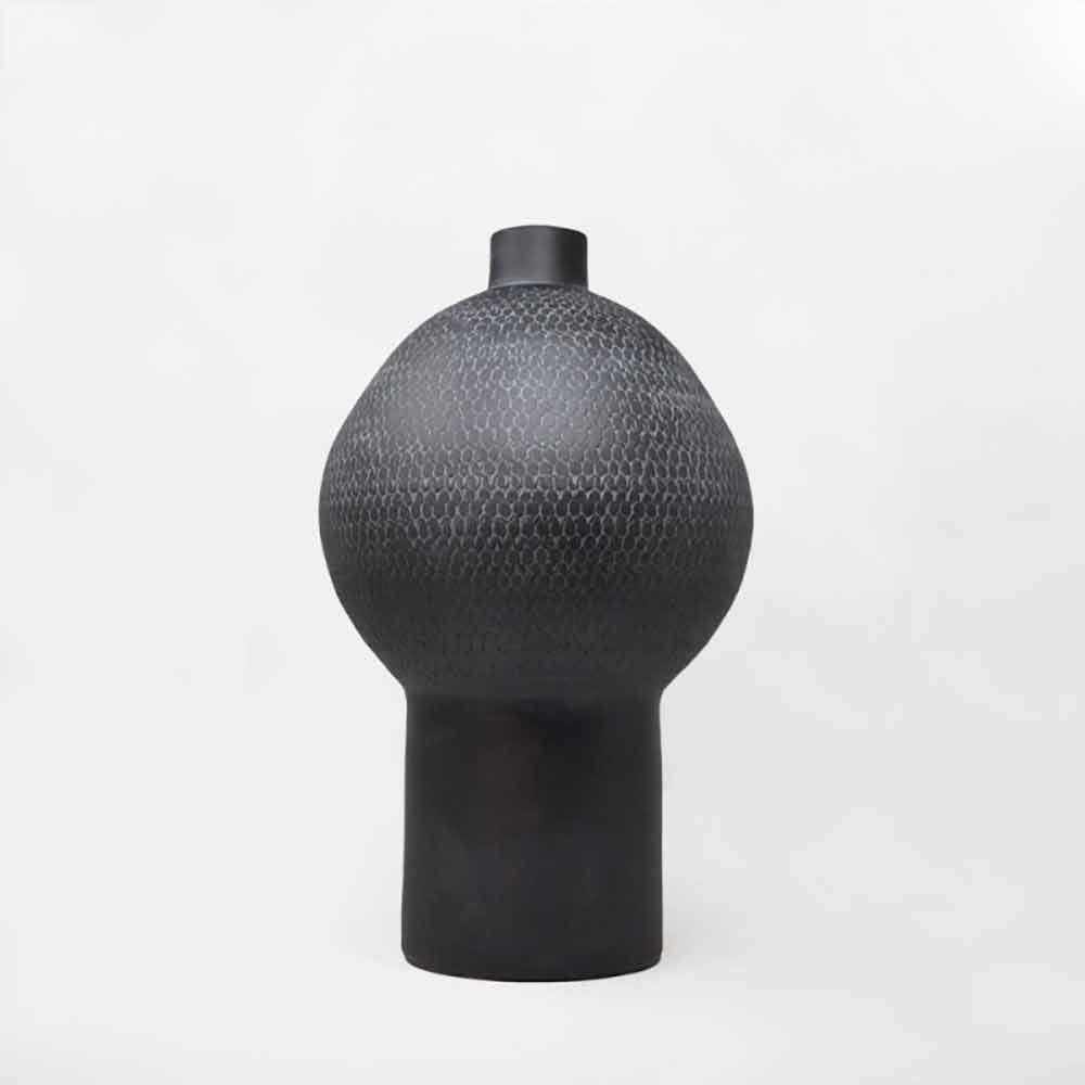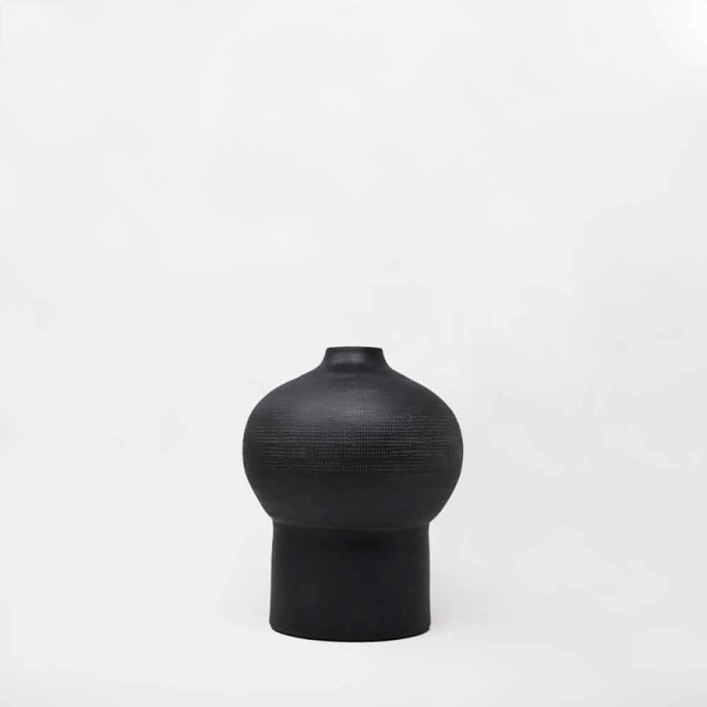 Zusammensetzung von dekorativen Vasen aus schwarzer und weißer Keramik.