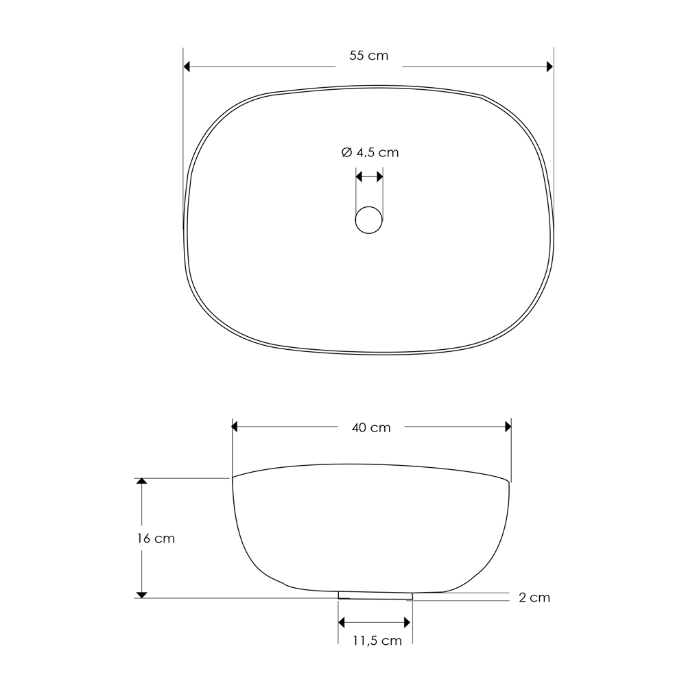 • Waschbecken - L 55 x P 40 x H 16 cm;