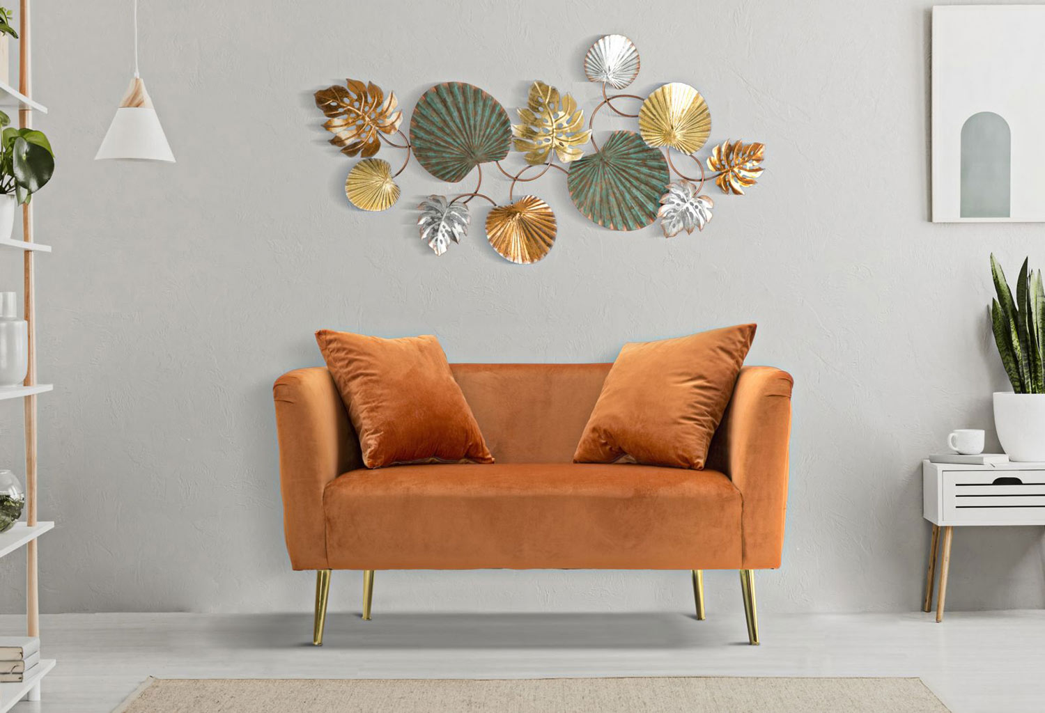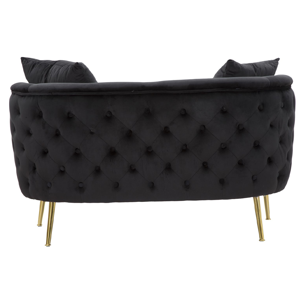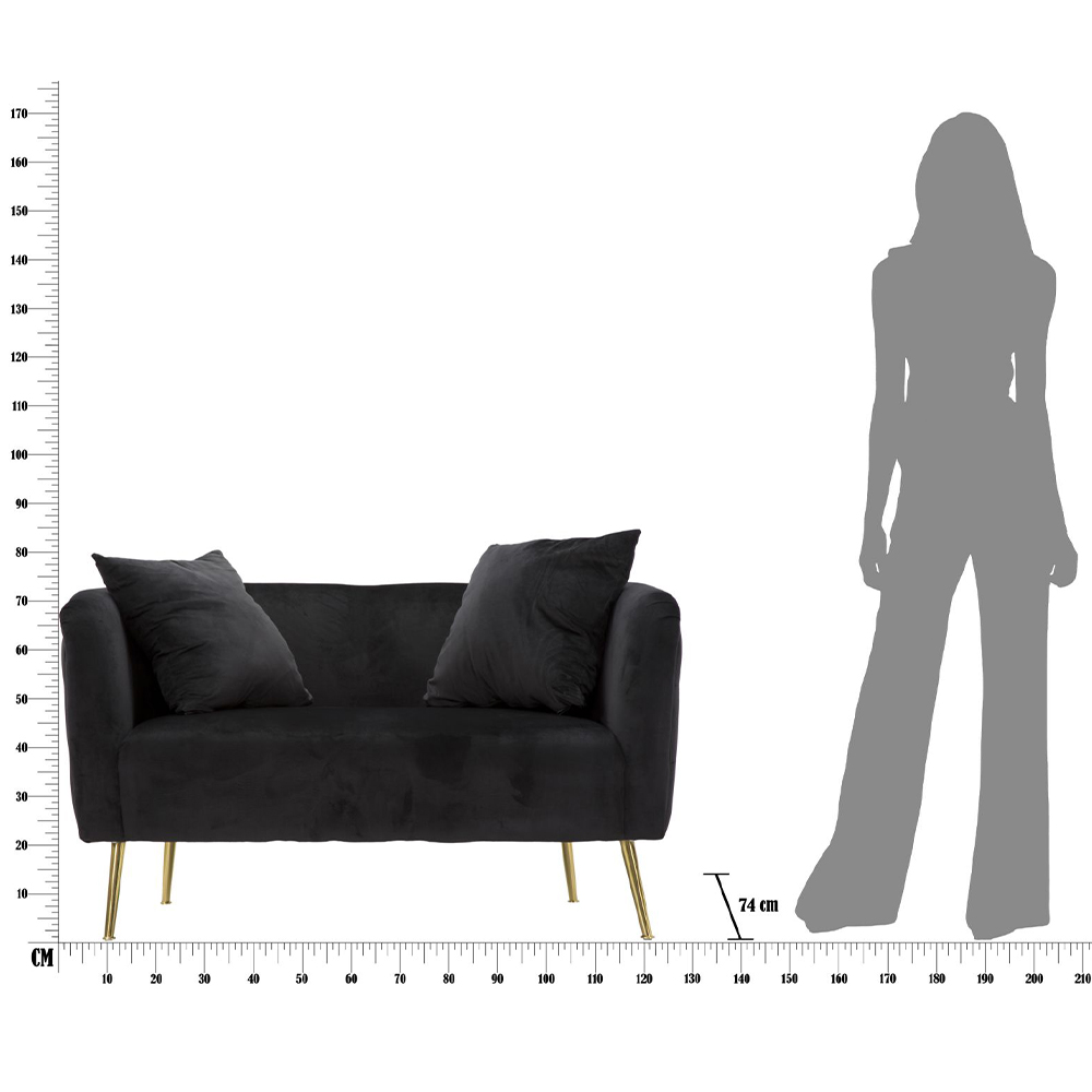 Modernes Zweisitzer-Sofa aus Holz, Eisen und Samt.