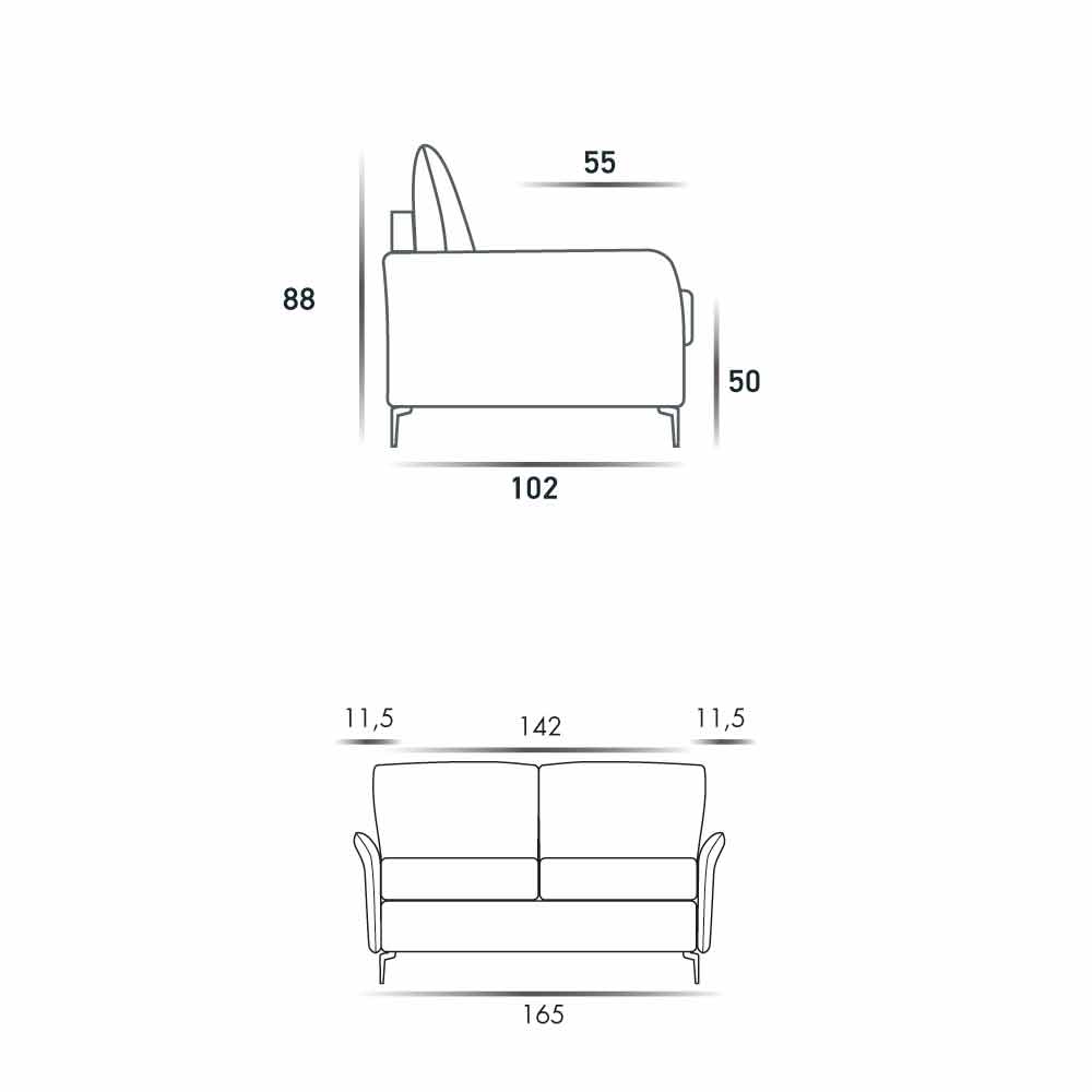Maxi 2-Sitzer Sofa L 165cm Kunstleder / Stoff made in Italy Erica