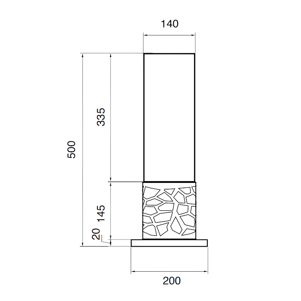 Die Struktur besteht aus Metall und das gehärtete Glas schützt die Flamme vor möglichen Windböen und hebt sie hervor; Dadurch ist es auch für den Außenbereich geeignet.